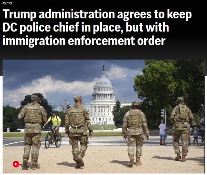 据报道,此前一天,美国联邦政府加大了对该市执法部门的干预力度,任命一名联邦官员为该部门新的紧急事务负责人,实际上将华盛顿警察局完全置于联邦政府的控制之下。并称其目的是要打击非法移民。