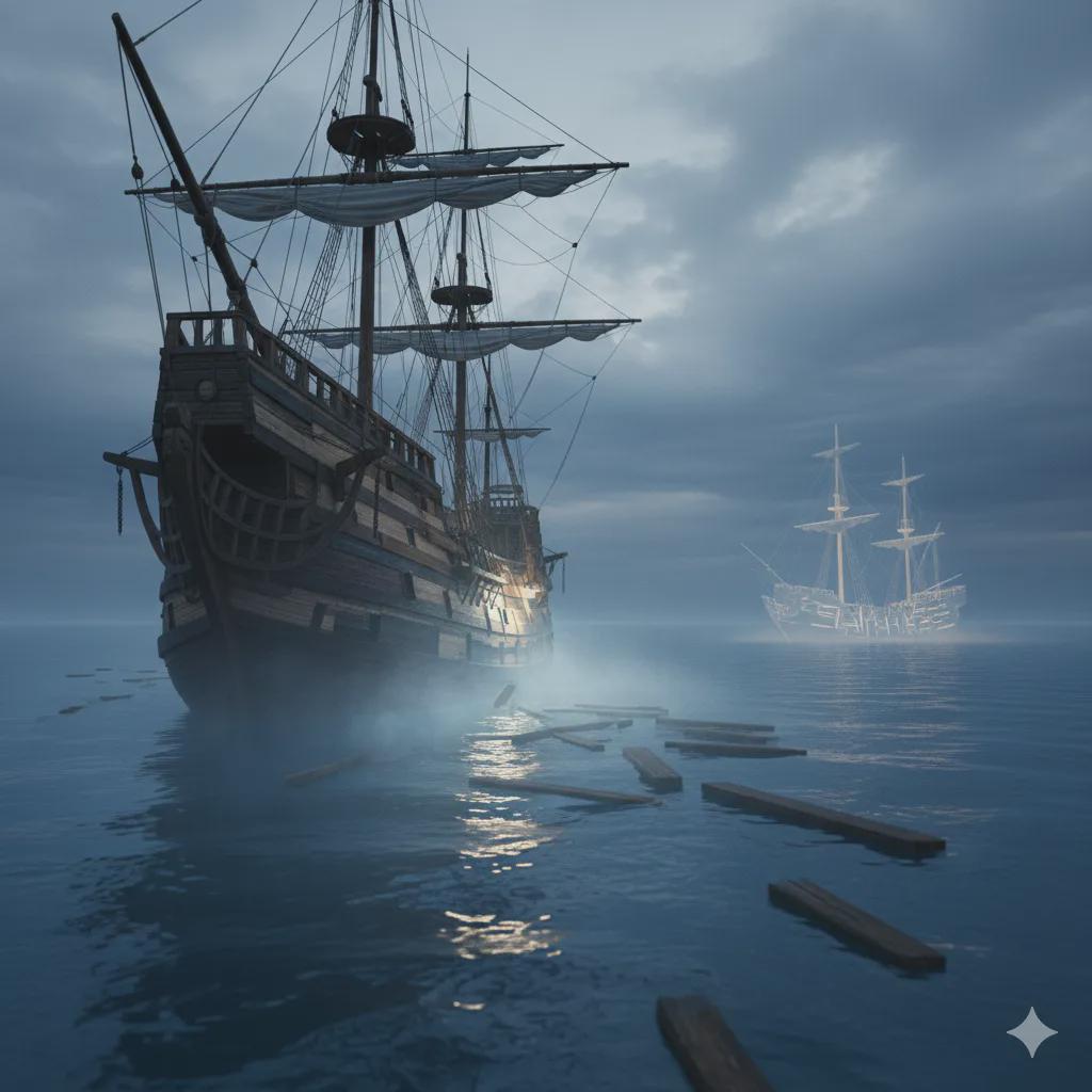 在A船完工的同一天,他在隔壁船坞,用所有这些原装旧木板,重新拼装出了另一艘船(我们称之为B船)。